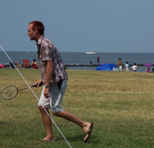 bit silty. Frisbee and beach badminton games